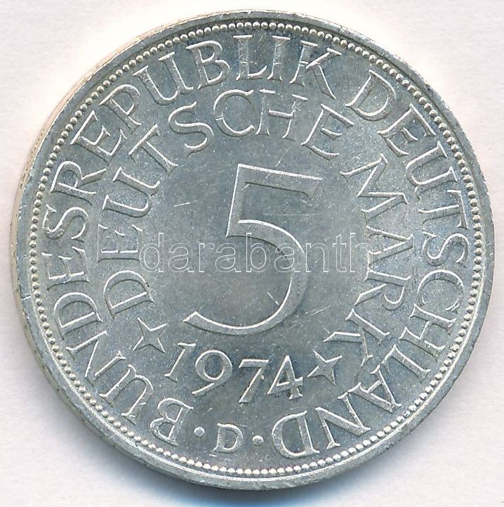 Krause KM#112.1 https://www.darabanth.com/hu/349-Gyorsarveres/349.0/Numizmatika/Kulfoldi-fem-es-ezustpenzek~1000012/NSZK-1974D-5M-Ag-T1--FRG-1974D-5-Mark-Ag-CAU-Krause-KM231121~II1969998