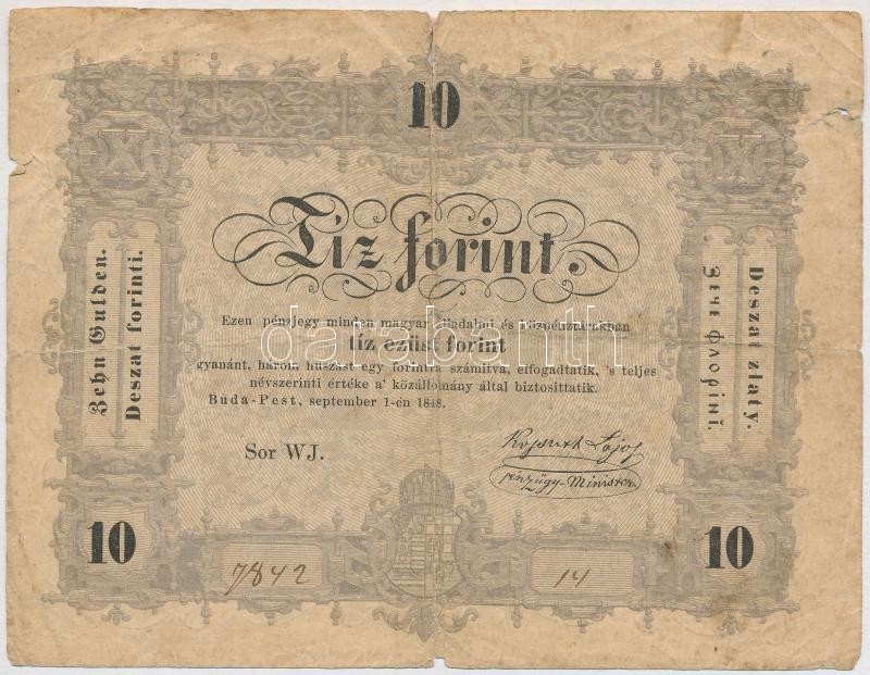 Leírás: 1848. 10Ft "Kossuth Bankó" T:III szakadások