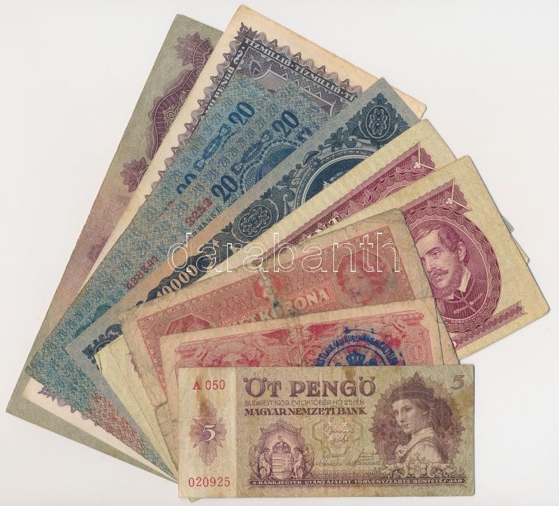 1913-1986. 10db-os bankjegy tétel, benne korona, pengő és forint, néhá... https://www.darabanth.com/hu/349-Gyorsarveres/349.0/Numizmatika/Magyar-bankjegyek~1000006/1913-1986-10db-os-bankjegy-tetel-benne-korona-pengo-es-forint-nehany-bankjegyen-felulbely~II1985437
