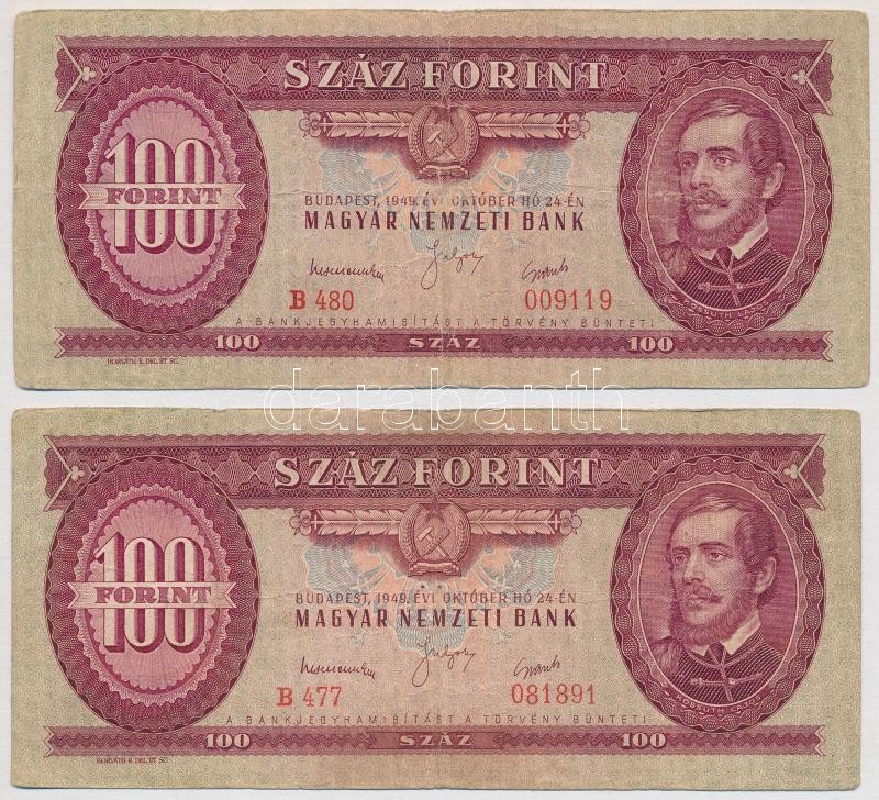 Leírás: 1949. 100Ft (2x) T:III,III-