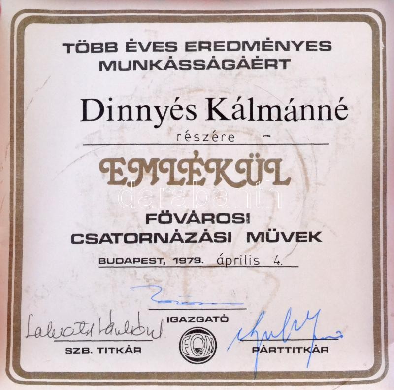 1979. "Fővárosi Csatornázási Művek / Kiváló Vállalat" Br eml... https://www.darabanth.com/hu/349-Gyorsarveres/349.0/Numizmatika/Magyar-emlekveretek-plakettek~1000008/1979-Fovarosi-Csatornazasi-Muvek-Kivalo-Vallalat-Br-emlekerem-adomanyozoi-okiratta~II1969853