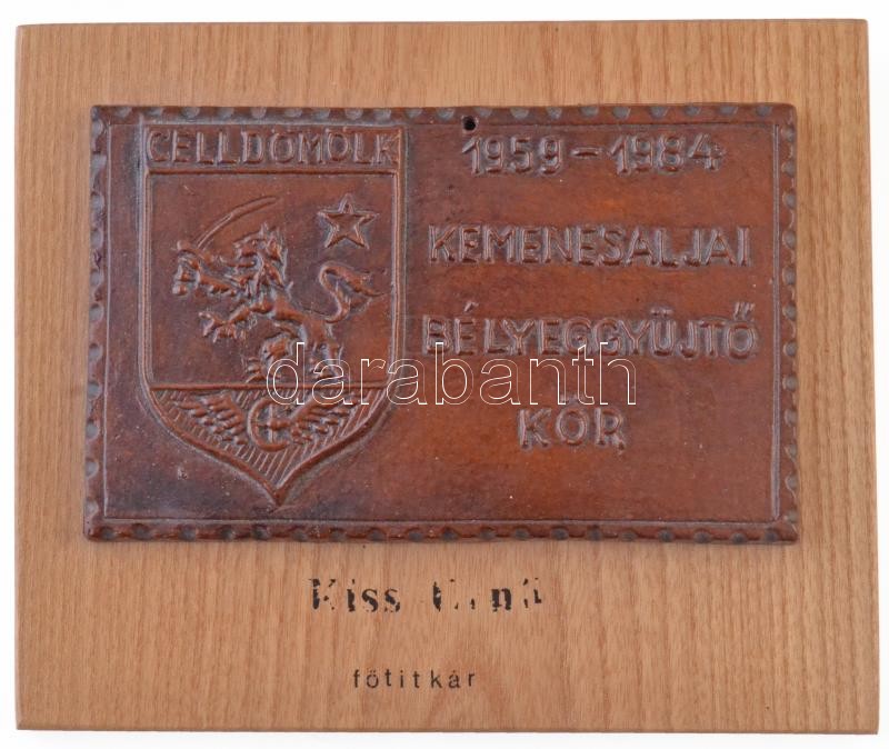 Leírás: 1984. "Celldömölk - 1959-1984 Kemenesaljai Bélyeggyűjtő Kör" egyoldalas Br plakett, fa talpra erősítve (129x79mm) T:2
