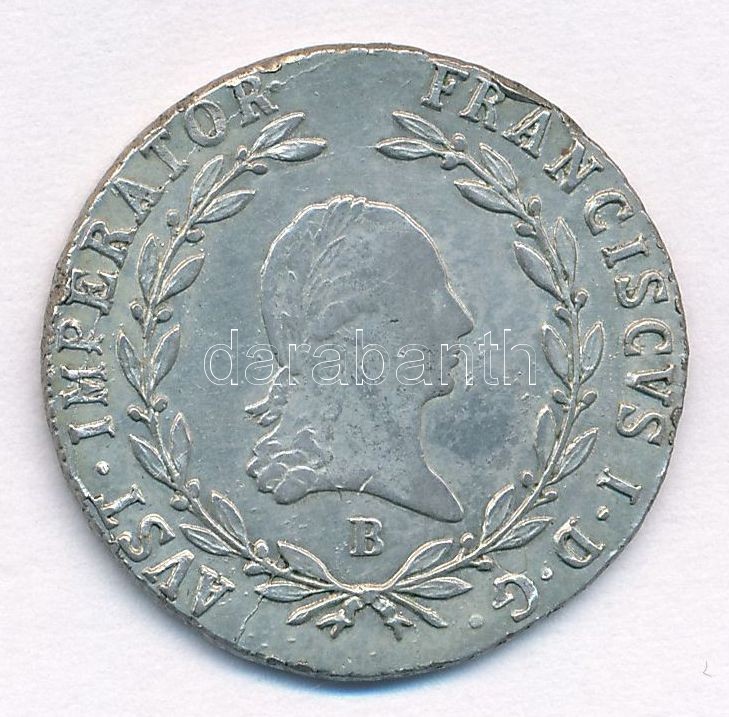 Hungary 1818B 20 Kreuzer ... https://www.darabanth.com/hu/349-Gyorsarveres/349.0/Numizmatika/Magyar-es-magyar-verdejelu-fem-es-ezustpenzek~1000007/1818B-20kr-Ag-I-Ferenc-T2-ph-Hungary-1818B-20-Kreuzer-Ag-Franz-I-CXF-edge-error-Huszar-1~II1982937