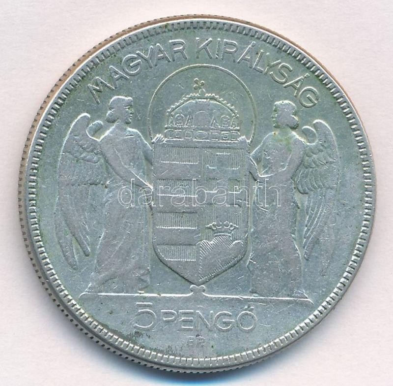 Leírás: 1930. 5P Ag "Horthy jobbra" T:2-,3 fo.