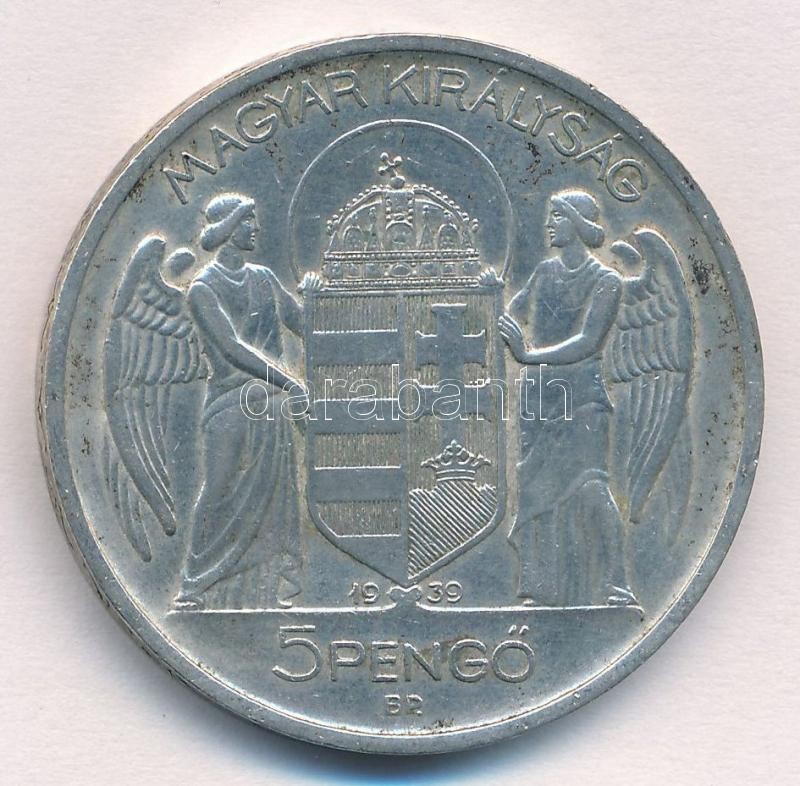 Leírás: 1939. 5P Ag "Horthy balra" T:1-,2 kis patina