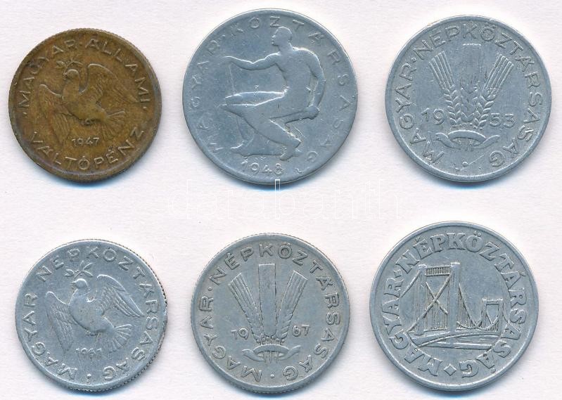 1947. 10f tombak + 1948. 50f Al + 1953. 20f Al + 1961. 10f Al + 1967.... https://www.darabanth.com/hu/349-Gyorsarveres/349.0/Numizmatika/Magyar-es-magyar-verdejelu-fem-es-ezustpenzek~1000007/1947-10f-tombak-plus-1948-50f-Al-plus-1953-20f-Al-plus-1961-10f-Al-plus-1967-20f-Al-plus-1968-50f-Al-T2-2-~II1984898