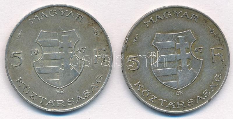 Leírás: 1947. 5Ft Ag "Kossuth" (2x) T:2 patina Adamo F8.1