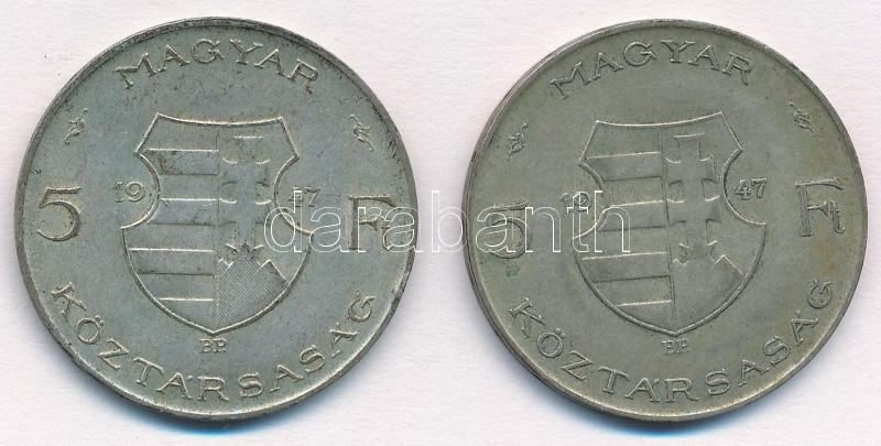 Leírás: 1947. 5Ft Ag "Kossuth" (2x) T:2 patina Adamo F8.1