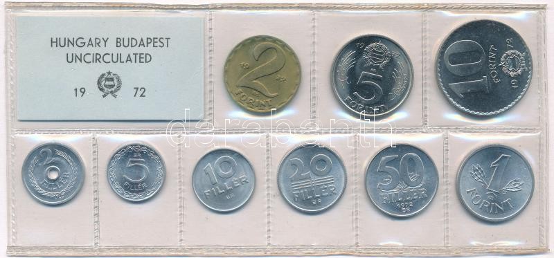 Leírás: 1972. 2f-10Ft (9xklf) érmés forgalmi sor fóliatokban T:1