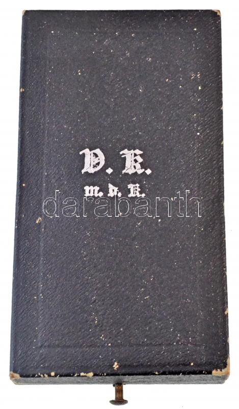 1914-1918. "Koronás Ezüst Érdemkereszt a Vitézségi Érem szalagján" karikán jelzett Ag kitüntetés mellszalagon, szintén függesztÅ‘karikán "WILHELM KUNZ" gyártói jelzéssel, eredeti "ETUIS- U. KASSETTENFABRIK IG. BERGMANN WIEN VII" dÃsztokban T:1-