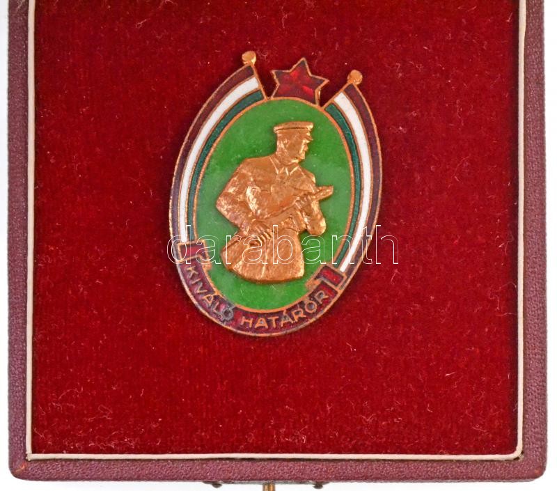 Leírás: ~1970. "Kiváló Határőr" aranyozott, zománcozott jelvény, eredeti tokban (45x33mm) T:2