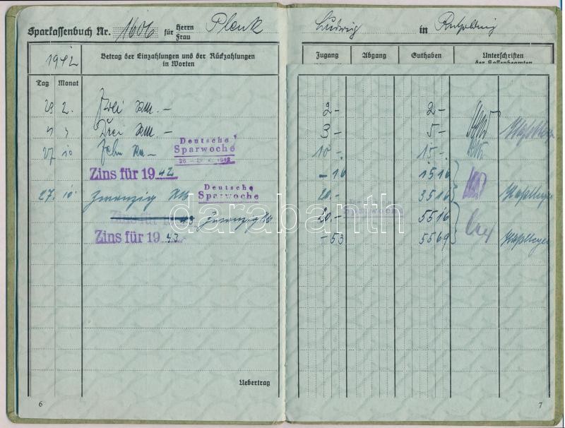 1939-1942. German Third Reich / Traunstein "Sparkassen der Kreissparkasse" with notes, cancellations C:XF