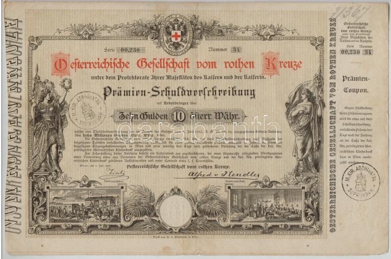 Ausztria / Bécs 1882. "Osztrák Vöröskereszt" kötvénye 10G ér... https://www.darabanth.com/hu/349-Gyorsarveres/349.0/Numizmatika/Reszvenyek-es-sorsjegyek~1000004/Ausztria-Becs-1882-Osztrak-Voroskereszt-kotvenye-10G-ertekben-szarazpecsettel-M-K~II1985818