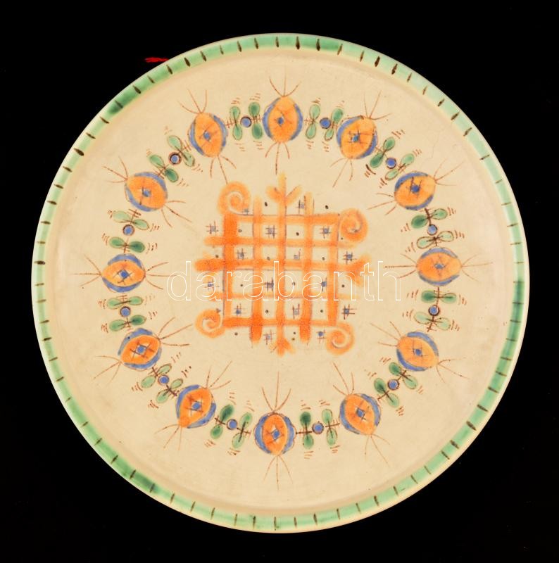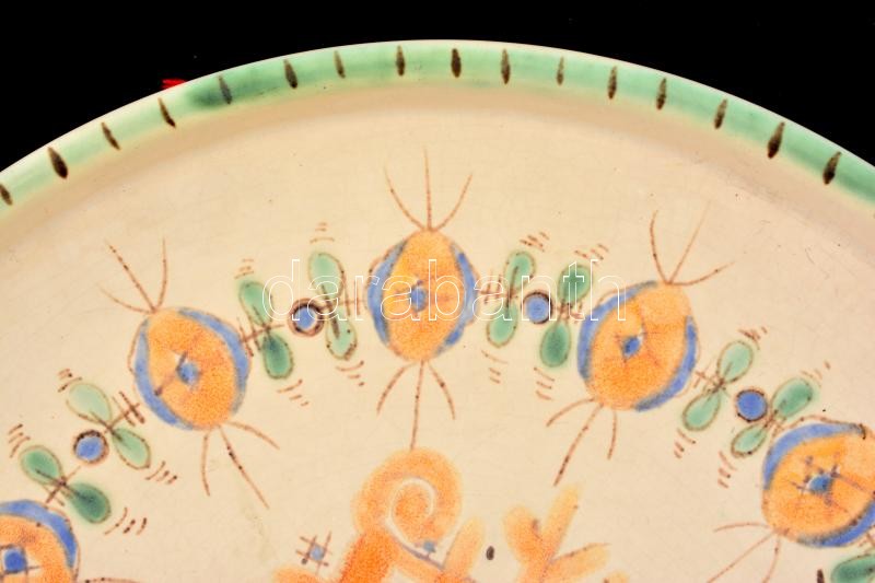 Leírás: Gorka Iparművészeti Vállalat. Lábas kínáló tál. Kézzel festett kerámia, jelzett, apró kopásnyomokkal, d:32 cm