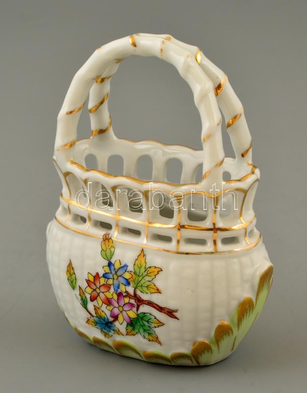 Leírás: Herendi Viktória mintás kis kosárka, kézzel festett, jelzett, kopásokkal, m: 9 cm