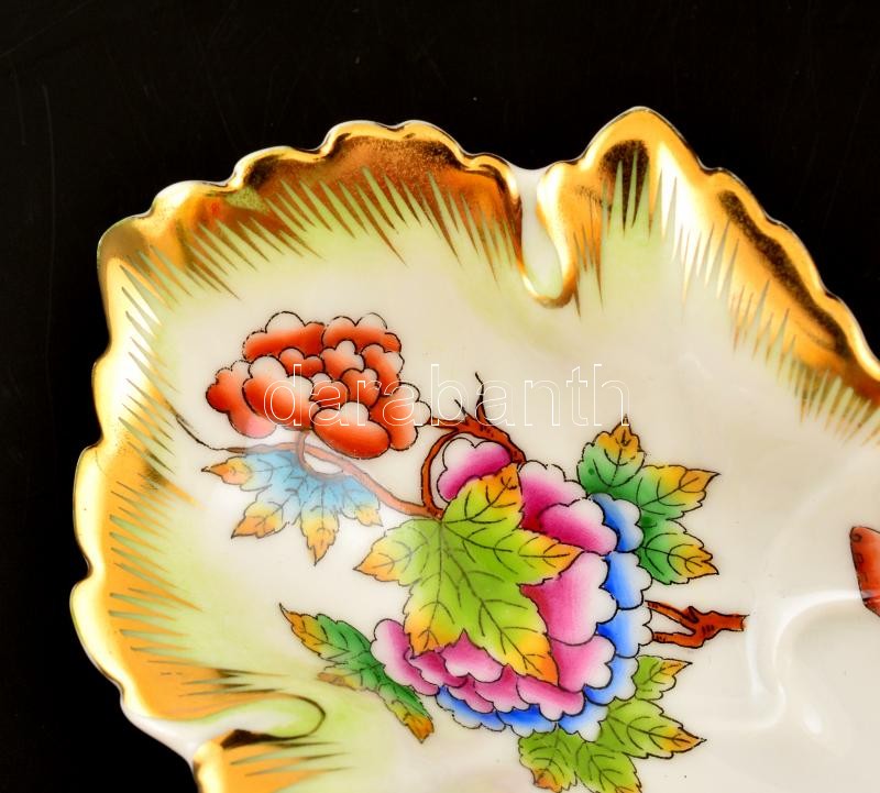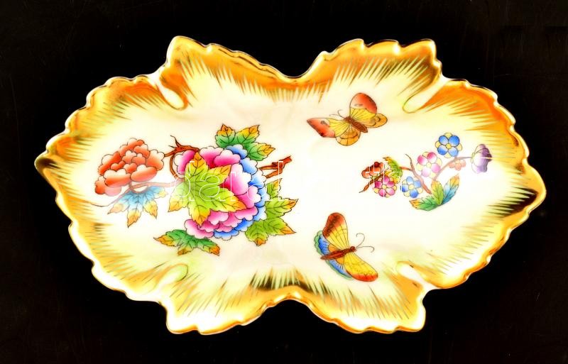 Leírás: Herendi Viktória mintás leveles tálka, kézzel festett, jelzett, kis kopásnyomokkal, 15×8,5 cm