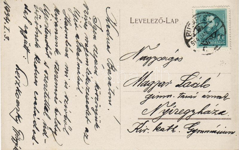 Leírás: 1934 Leszkovszky György festőművész aláírása képeslapján