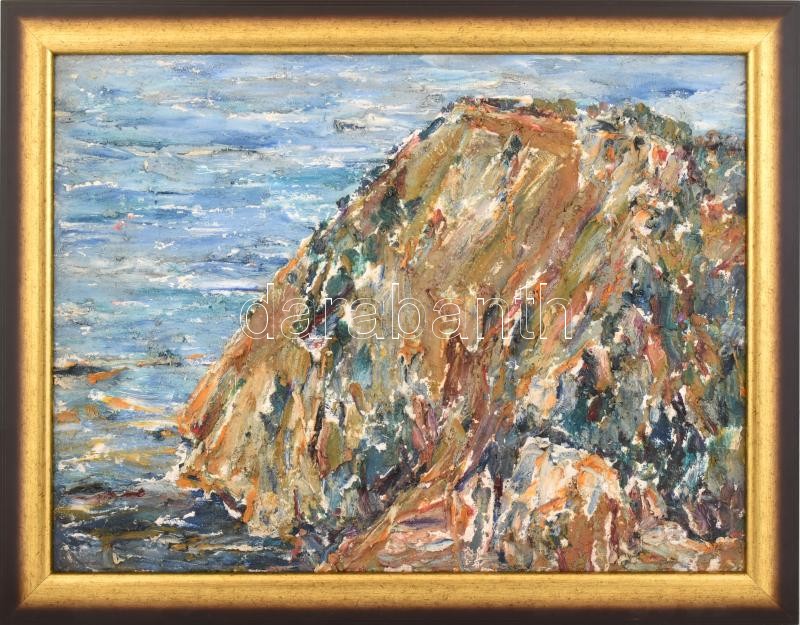 Gyelmis Lukácsné Fehér Etelka (1921-): Beli táj (? Jugoszlávia), 1979. Olaj, farost, jelzett a hátoldalán. Fa keretben, 60×80 cm / Fehér Etelka (1921-): Beli landscape (? Yugoslvia), 1979. Oil on wood fibre, signed on the reverse. Framed. 60×80 cm.