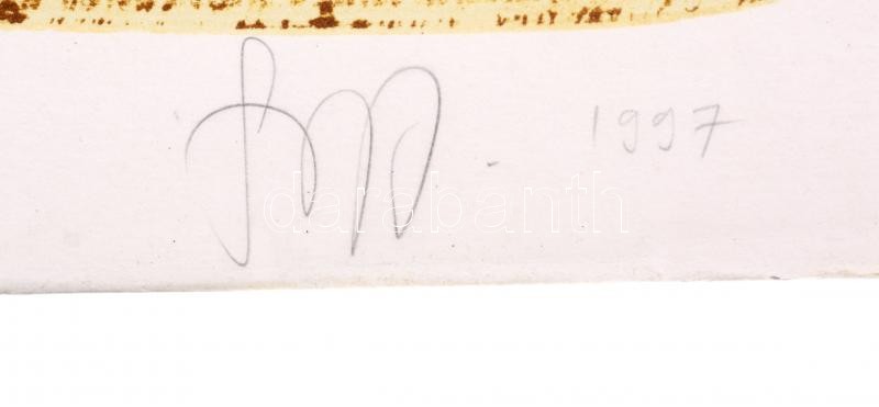 Szurcsik József (1959-): Csapda II, 1997. Litográfia, papír. Jelzett. Számozott: 14/15. Hátoldalán a művész bélyegzőjével. 64x89,5 cm. Lap alján apró szakadással. / Litograph on paper, signed, numbered: 14/15. With the artist's stamp on the reverse. With small tear on the bottom.