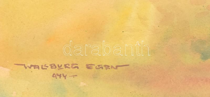 Wallburg Egon (Zórád Ernő, 1911-2004): Gulyahajtás, 1944. Akvarell, papír. Jelzett. Üvegezett fa keretben. 42x60 cm / Egon Wallburg (Ernő Zórád, 1911-2004): Herd driving, 1944. Watercolour on paper. Signed. Framed with glass. 42x60 cm