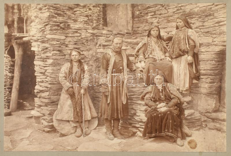 cca 1890-1900 Déchy Mór (1851-1917) geográfus, utazó, a Kaukázus egyik első kutatójának fotó hagyatéka, külföldi expedíciók fotói, kaukázusi és feltehetőleg más jellegű fotók is, összesen 94 db fotó, nagyrészt fotók kartonon, valamint 12 db fotó, közte feliratozottak is, változó állapotban, aa fotók egy részének sarkán és/vagy a szélein lyukakkal, egy hiányos és néhány sérült fotóval is, változó kb. 15x20 cm és 7x11 cm közötti méretben. Nagyon különleges, egyedi fotó-anyag./ cca 1890-1900 Photo heritage of Mór Déchy (1851-1917) geographer, traveler, and Caucasus researcher. 94 pieces of photo, with photos about the Caucasus and other places, some photo with notices too, photos on boards, and photos, with some damaged photos, cca. between 15x20 cm and 7x11 cm. Very interesting and unique photos.