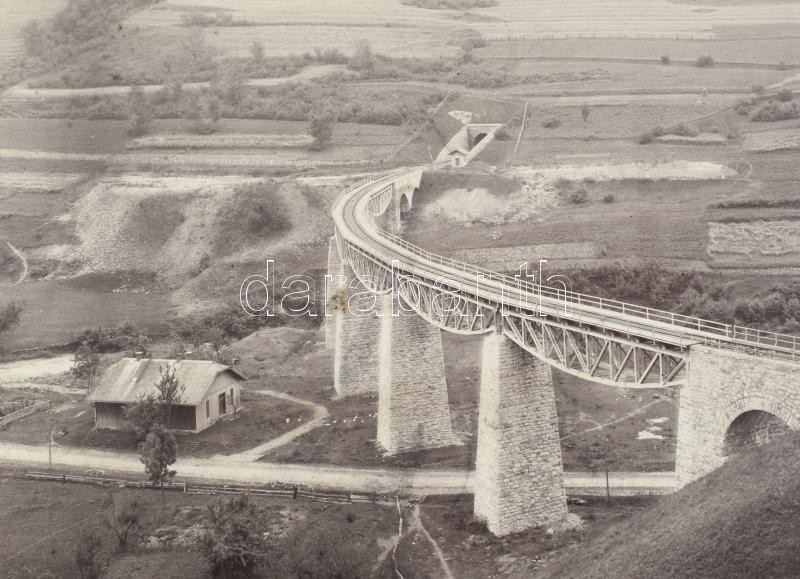 Leírás: cca 1900 Uzsoki híd, Ukrajna, kartonra ragasztott, feliratozott fotó, 23×30 cm