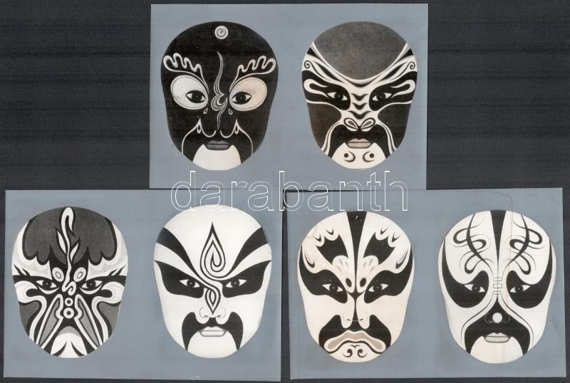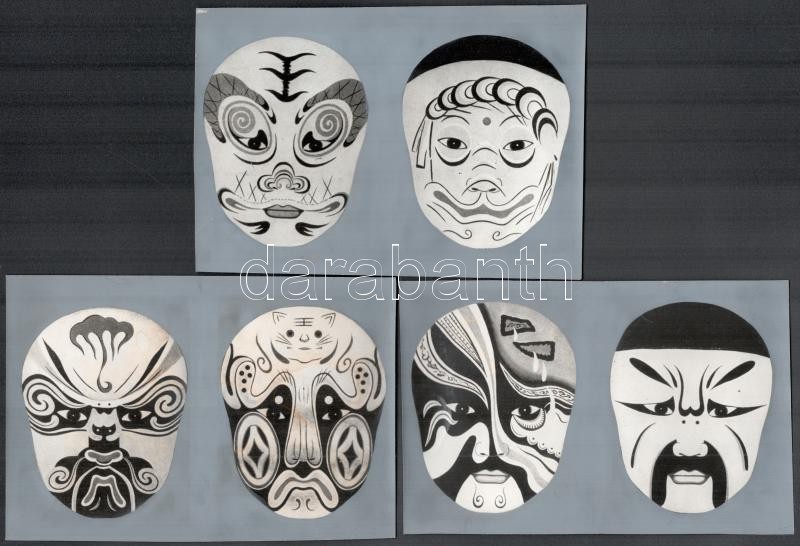 cca 1910 Óceánia, harcosok álarca, 6 db vintage sajtófotó; a képek háttere amerikai retussal (légfúvásos festékszóró pisztollyal) kifedve; a képeket publikálták az Élet és tudomány c. lapban, 12,3x18 cm
