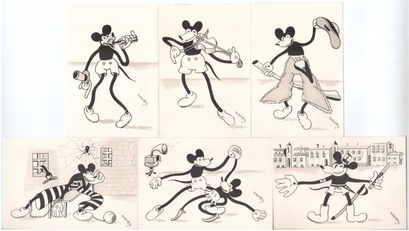 24 db Miki-egér levelezőlap. Rajzolta: Bisztriczky József. Földes Ede kiadása - Teljes képeslap sorozat saját borítójával, kiváló használatlan állapotban / 24 pre-1945 Hungarian early Disney art postcards in their own case, excellent unused condition!: Mickey Mouse