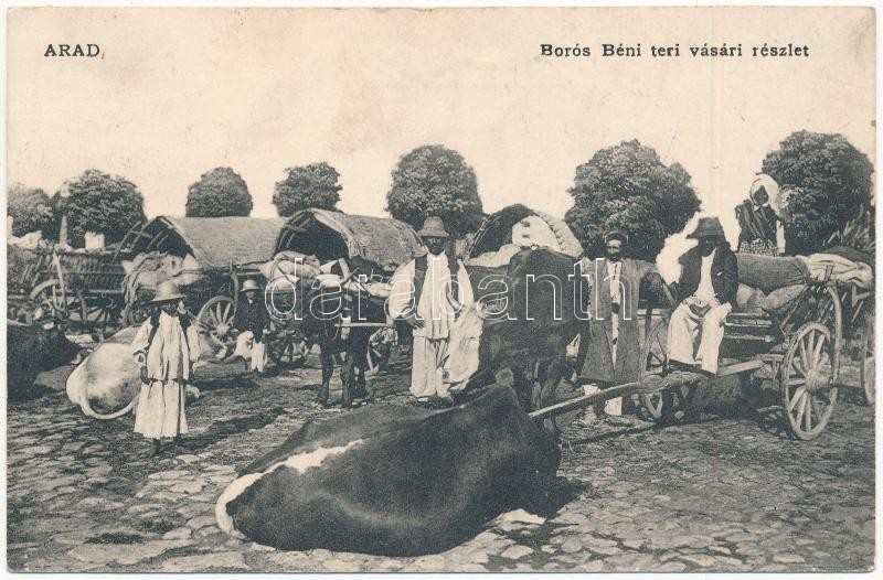 1915 Arad, Borós Béni téri vásár részlete, árusok ökrökkel és szekrekk... https://www.darabanth.com/hu/35-Nagyaukcio/35.1/Kepeslapok/Erdely~14667/1915-Arad-Boros-Beni-teri-vasar-reszlete-arusok-okrokkel-es-szekrekkel-market-with-ven~II2363312