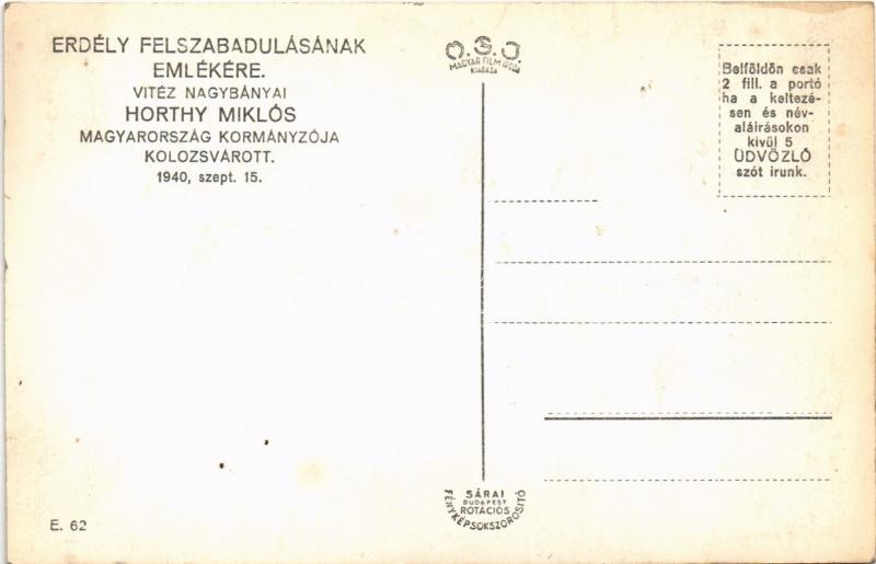 1940 Kolozsvár, Cluj; bevonulás, Horthy Miklós és Purgly Magdolna / en... https://www.darabanth.com/hu/35-Nagyaukcio/35.1/Kepeslapok/Erdely~14667/1940-Kolozsvar-Cluj-bevonulas-Horthy-Miklos-es-Purgly-Magdolna-entry-of-the-Hungarian-troop~II2370819