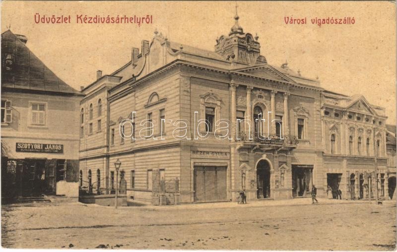 Kézdivásárhely, Targu Secuiesc; Városi vigadószálló, Szotyori János, Rézer Gyula és Kupán József üzlete, Jancsó szálloda. W.L. (?) No. 164. / redoute hotel, shops