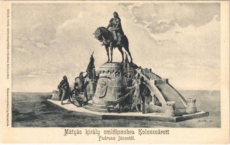 Leírás: Kolozsvár, Cluj; Mátyás király emlékszobra Fadrusz Jánostól. Mátyás király szoborképvállalat kiadása / statue of Matthias Corvinus s: Horti Pál