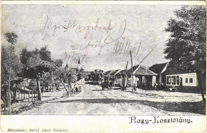 1905 Nagykosztolány, Nagy-Kosztolány, Velké Kostolany; utca, templom, ... https://www.darabanth.com/hu/35-Nagyaukcio/35.1/Kepeslapok/Felvidek~14668/1905-Nagykosztolany-Nagy-Kosztolany-Velke-Kostolany-utca-templom-kut-Szold-Jakab-kiadasa-~II2370772