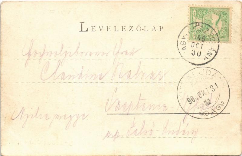 Leírás: 1905 Nagykosztolány, Nagy-Kosztolány, Velké Kostolany; utca, templom, kút. Szold Jakab kiadása / street, churches, well