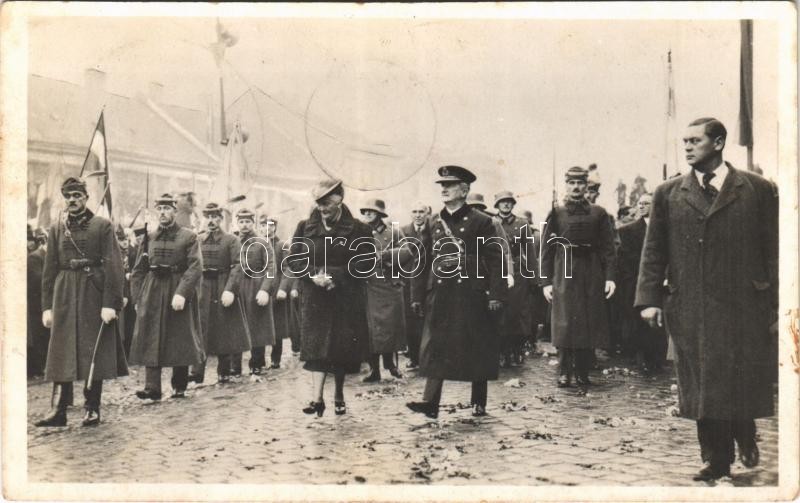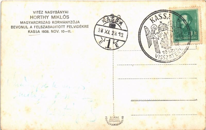 1938 Kassa, Kosice; bevonulás, Horthy Miklós és felesége Purgly Magdolna / entry of the Hungarian troops, Horthy and his wife + "1938 Kassa visszatért" So. Stpl (fl)
