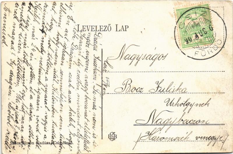 Leírás: Csíz, Csízfürdő, Kúpele Cíz; szanatórium. Szűcs Simon kiadása / sanatorium (EK)
