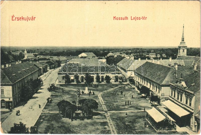Leírás: Érsekújvár, Nové Zámky; Kossuth Lajos tér, Nemzeti szálloda, Steiner Miksa üzlete. W.L. 426. / square, shops, hotel