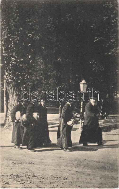 Leírás: Pöstyén, Piestany; zsidó kereskedők séta közben. Judaika / Jewish vendors on a walk. Judaica