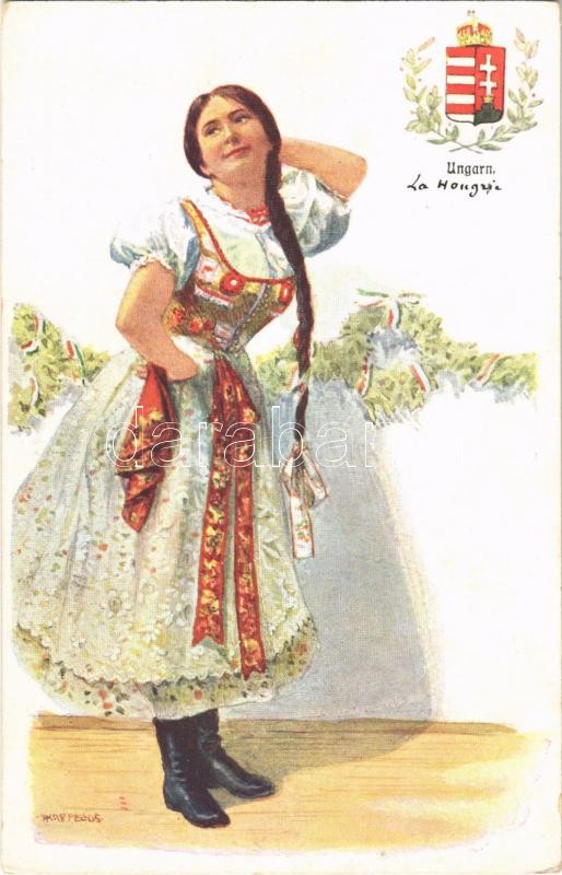 Ungarn / La Hongrie / Magyar népviselet és címer / Hungarian folklore ... https://www.darabanth.com/hu/35-Nagyaukcio/35.1/Kepeslapok/Folklor~14694/Ungarn-La-Hongrie-Magyar-nepviselet-es-cimer-Hungarian-folklore-and-coat-of-arms-BKWI-~II2354821