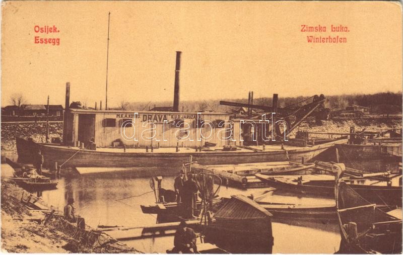 1916 Eszék, Essegg, Osijek; Téli kikötő MKÁ Dráva kotró uszály, halász... https://www.darabanth.com/hu/35-Nagyaukcio/35.1/Kepeslapok/Horvatorszag~14670/1916-Eszek-Essegg-Osijek-Teli-kikoto-MKA-Drava-kotro-uszaly-halaszhajok-WL-631~II2366095