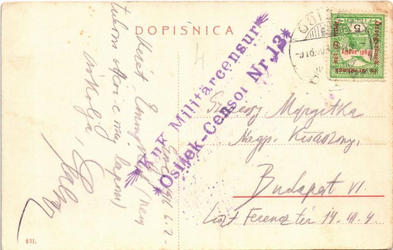 Leírás: 1916 Eszék, Essegg, Osijek; Téli kikötő MKÁ Dráva kotró uszály, halászhajók. W.L. (?) 631. / Zimska Luka / Winterhafen / winter port, barge, dredge, fishing boats (EK)