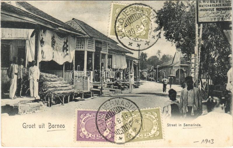 1913 Samarinda (Borneo), Straat / street, shops. TCV card (Rb) https://www.darabanth.com/hu/35-Nagyaukcio/35.1/Kepeslapok/Indonezia~14712/1913-Samarinda-Borneo-Straat-street-shops-TCV-card-Rb~II2364491
