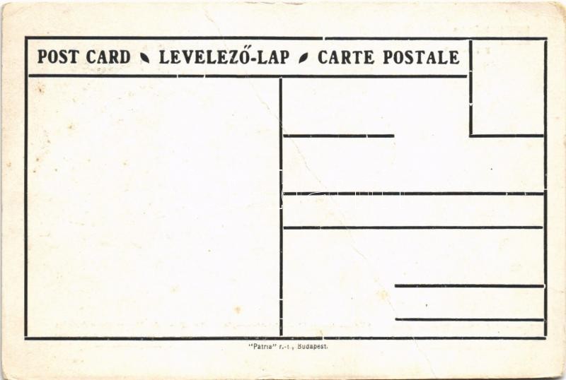 Leírás: Az úgynevezett demarkációs vonal a román-cseh-szerb imperialisták kezében. Patria rt. kiadása / Hungarian irredenta art postcard s: Hollós (fa)