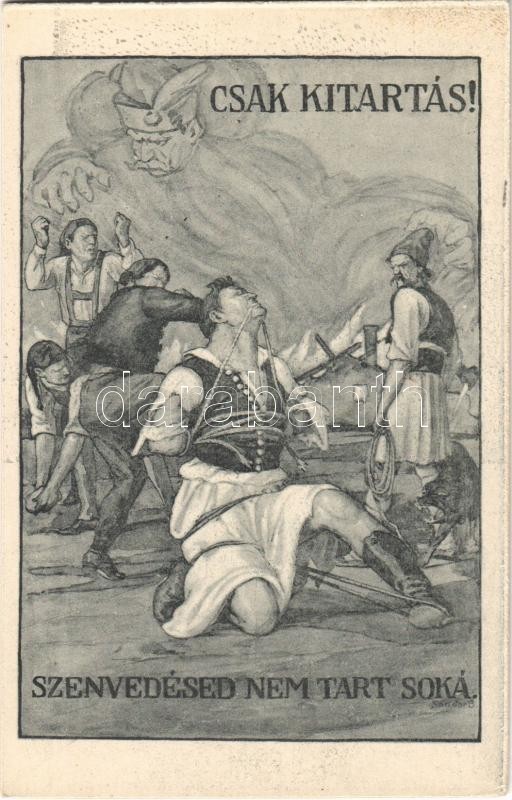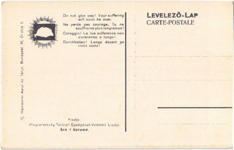 Leírás: Csak kitartás! Szenvedésed nem tart soká! Magyarország Területi Épségének Védelmi Ligájának kiadása / Hungarian irredenta art postcard s: Sándor B.