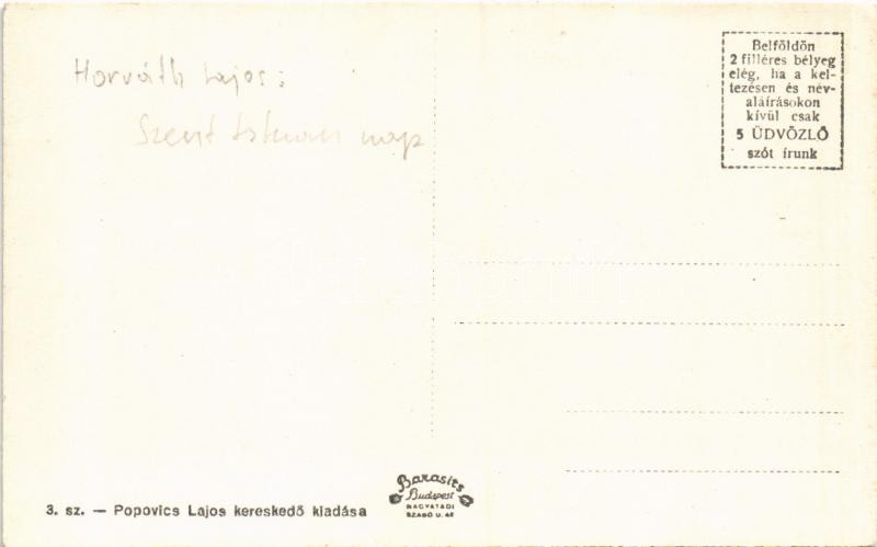 1940 Taracköz, Teresva; Augusztus 20. Szent István napi ünnepély magyar zászlókkal. Popovics Lajos kiadása / Stephen I of Hungary festival with Hungarian flags, celebration