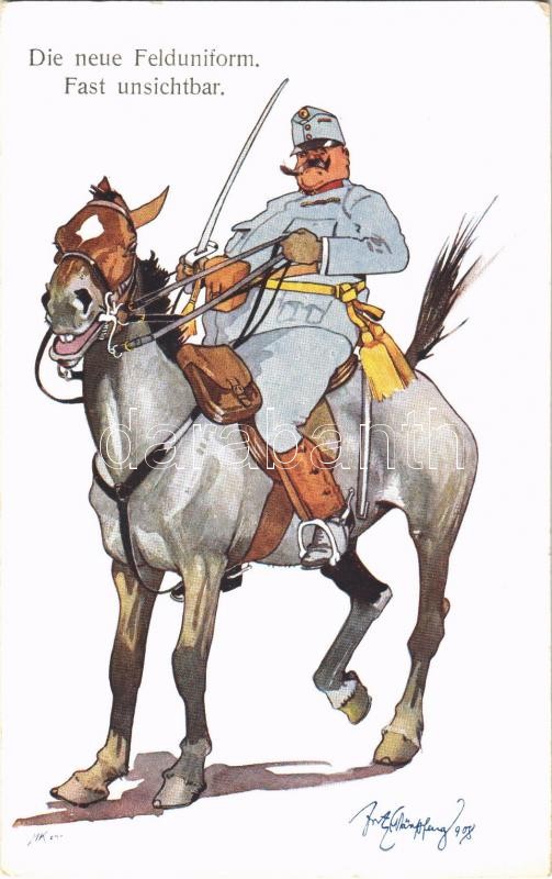 Die neue Felduniform. Fast unsichtbar. K.u.K. Militärhumor / Osztrák-magyar katonai humor / Austro-Hungarian military humour. B.K.W.I. 584-4. s: Fritz Schönpflug