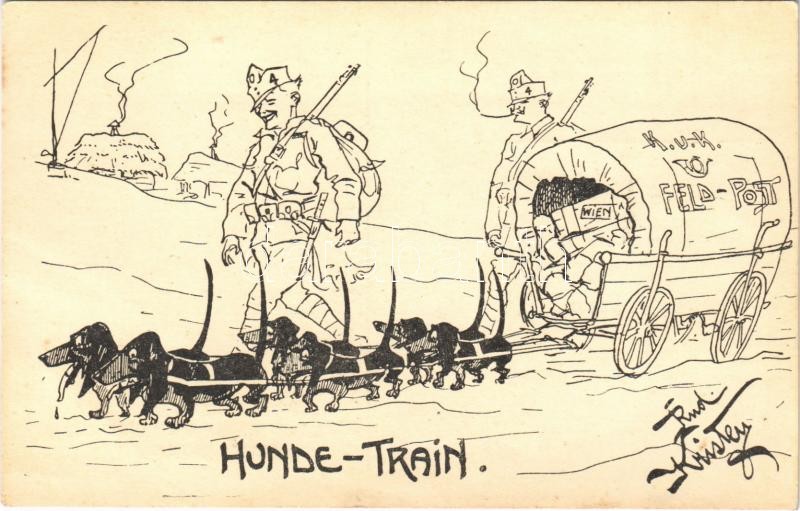 Hunde-Train. K.u.K. Feld-Post. Deutschmeister- Witwen- und Waisen-Stiftung (Aktion im Felde). C. Pietsch / Első világháborús osztrák-magyar katonai kutya trén postakocsival / WWI Austro-Hungarian military dog train (supply convoy) s: Rud. Kristen