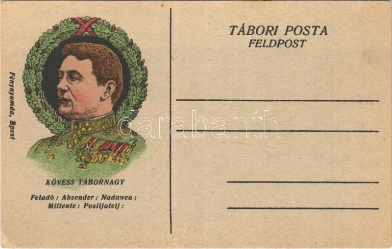 Kövess Tábornagy. Tábori posta / K.u.K. Feldpost / WWI Austro-Hungaria... https://www.darabanth.com/hu/35-Nagyaukcio/35.1/Kepeslapok/Katonai~14716/Kovess-Tabornagy-Tabori-posta-KuK-Feldpost-WWI-Austro-Hungarian-military-art-postcard-He~II2366164