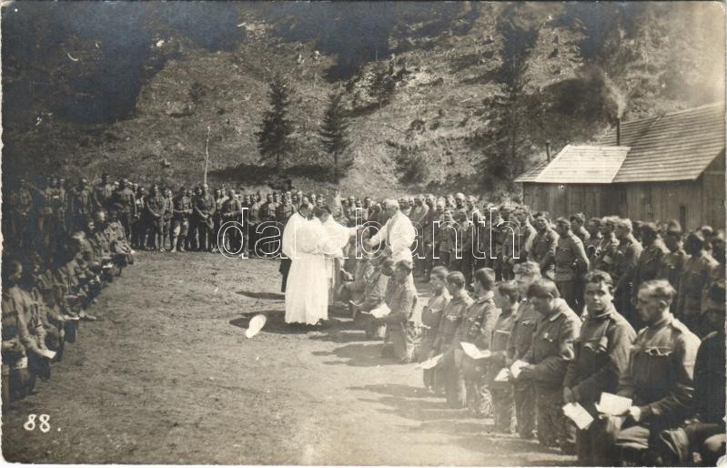Tölgyesi-szoros (Gyergyótölgyes, Tulghes), első világháborús osztrák-magyar katonák papi áldásosztás közben a táborban / WWI K.u.K. (Austro-Hungarian) military camp, priests blessing the soldiers. photo
