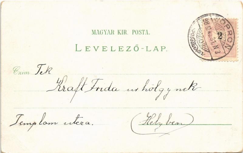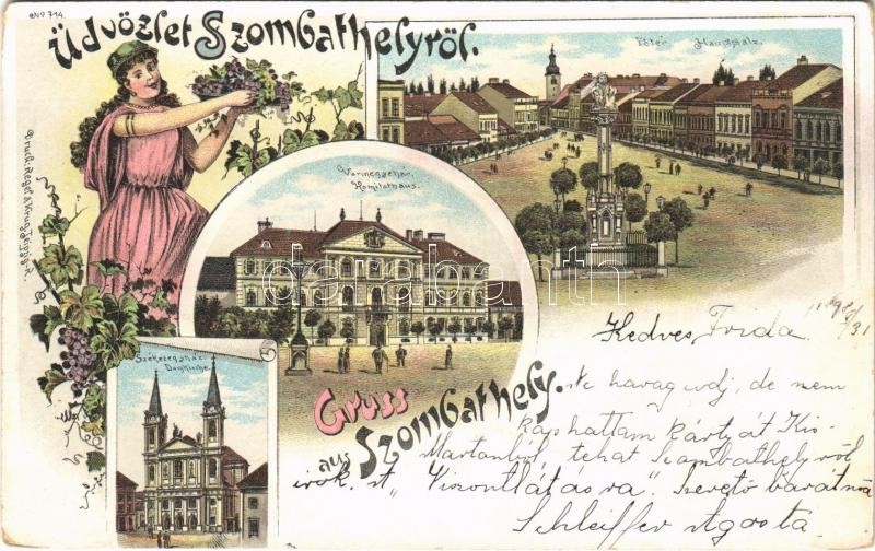 Leírás: 1898 (Vorläufer) Szombathely, Vármegyeház, székesegyház, Fő tér. Regel & Krug Art Nouveau, floral, litho